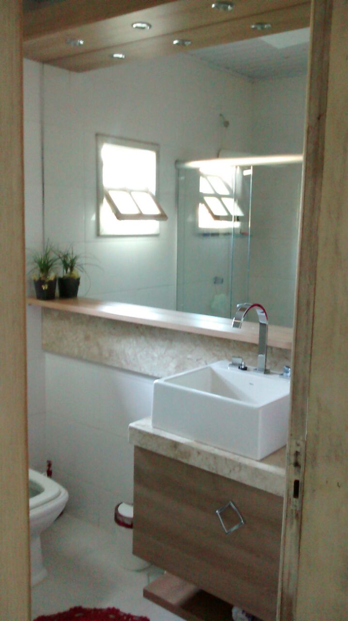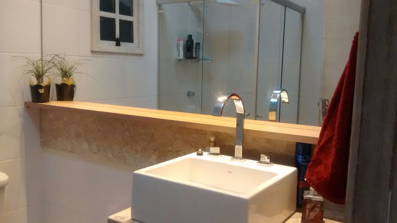 Este banheiro foi totalmente renovado, desde os revestimentos à decoração!
