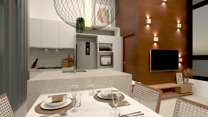 Normalmente desenvolvemos o projeto arquitetônico, os complementares técnicos (hidrosanitário, elétrico e estrutural) e o projeto de interiores, que compreende todos os detalhes internos, como definição e paginação dos revestimentos de piso e paredes, assim como projeto de forro e iluminação até o detalhamento do mobiliário e demais definições que o compõem.
